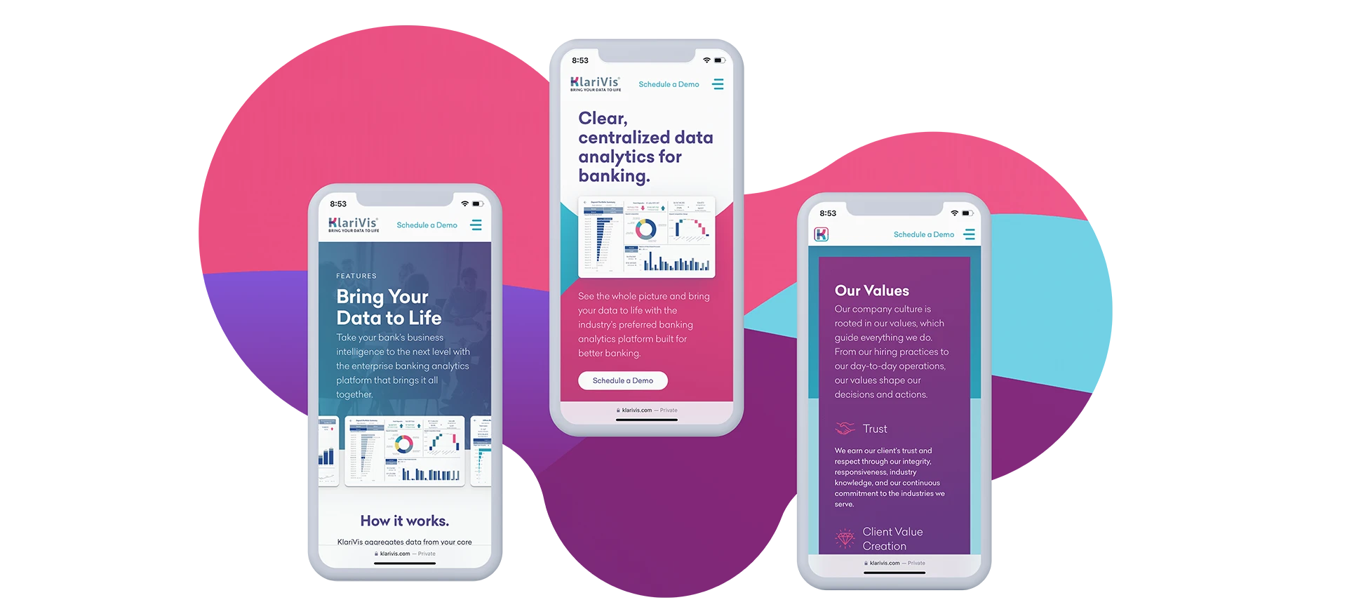 “We had an incredible product, some great clients under our belt, and tremendous momentum,” recalls Erica Starr, KlariVis’s CMO. “We needed a partner that could very quickly elevate the sophistication of our look and feel and articulate what our product does and who it’s for.”