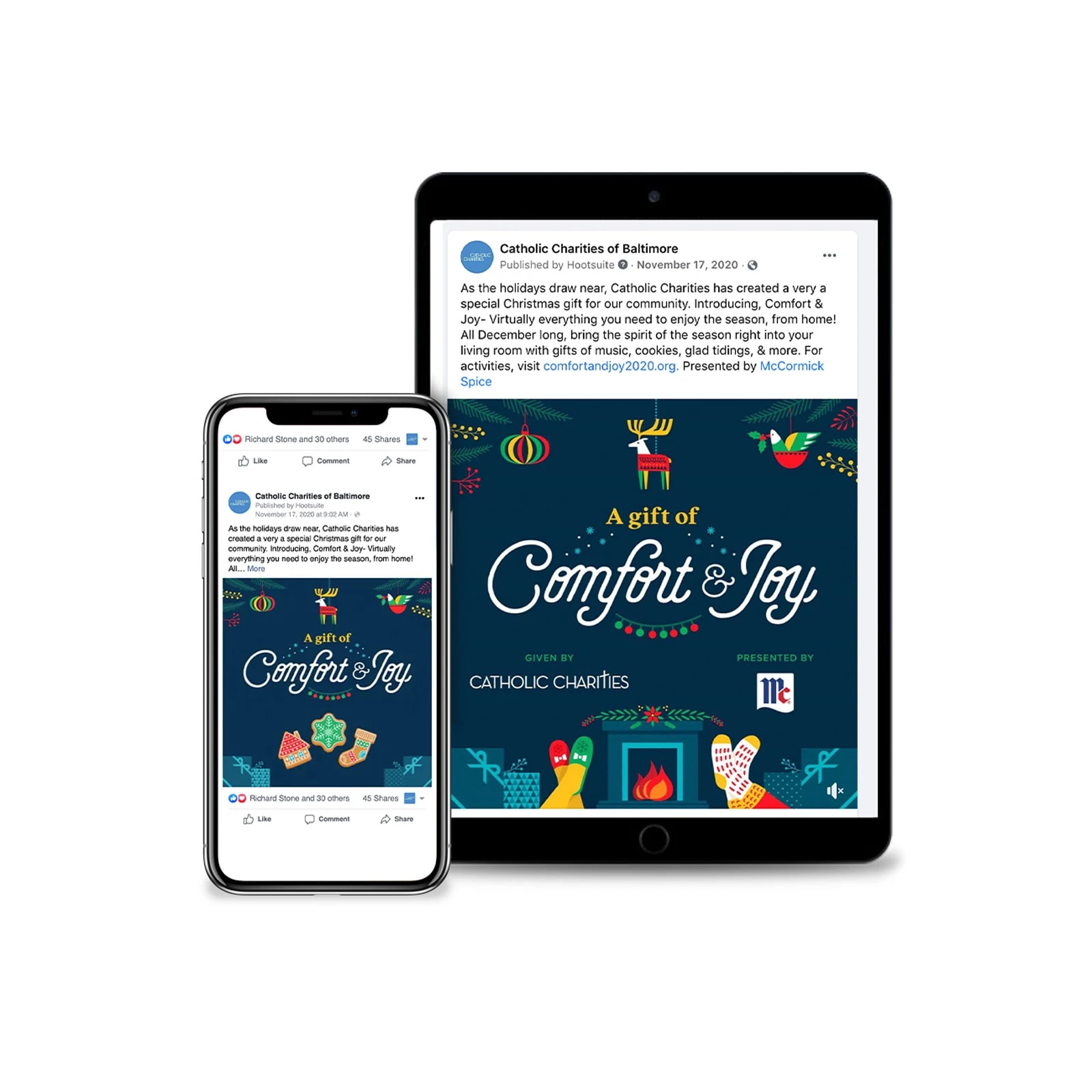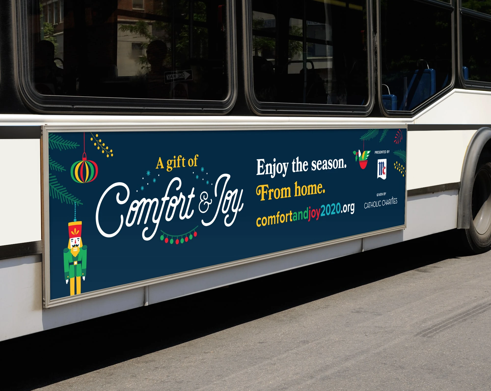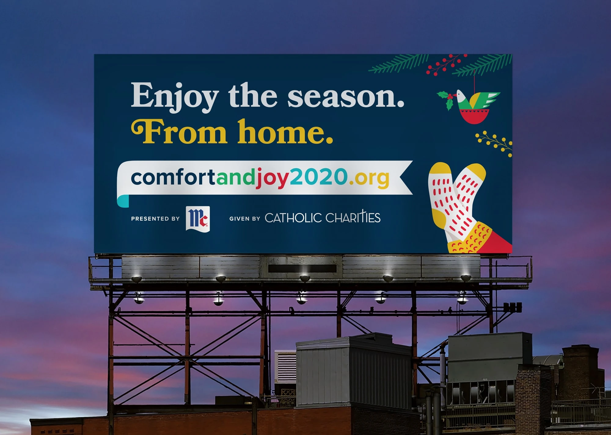 Vitamin created a fully integrated campaign to announce, build awareness, and sustain engagement all December long. Comfort & Joy was seen and heard in Catholic Charities’ target geographies on everything from a 15 second animated TV spot, radio, outdoor billboards and transit, to social, programmatic, and features on local news.