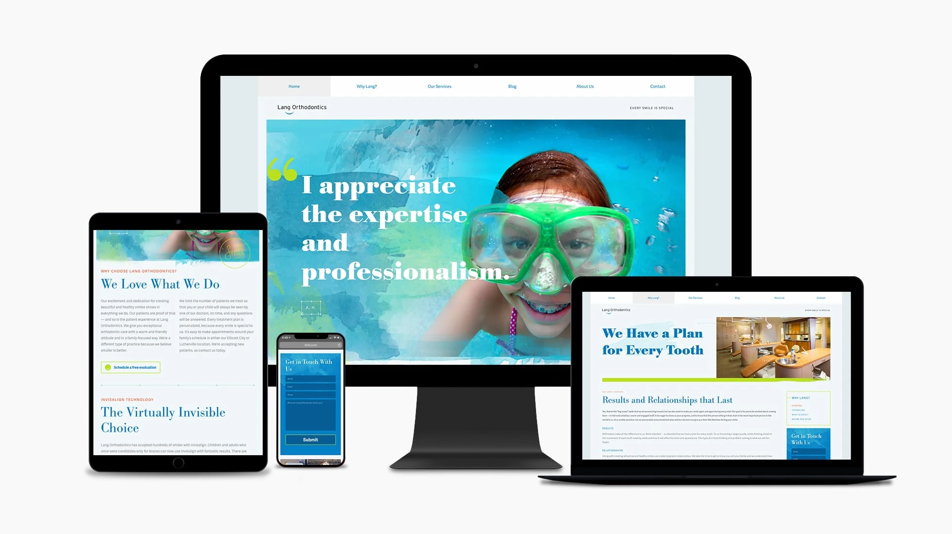 Lang Orthodontics is a private practice founded in 1984 with locations in Lutherville and Ellicott City, MD. The practice, recognized by Baltimore Magazine as the “Best of Baltimore” has garnered a stellar reputation in the Baltimore Metropolitan area as the preeminent practice for orthodontics treatment. Each office uses state-of-the-art equipment in an uber contemporary setting including a movie theatre complete with theatre seating to help keep young children entertained and occupied while older siblings receive care.