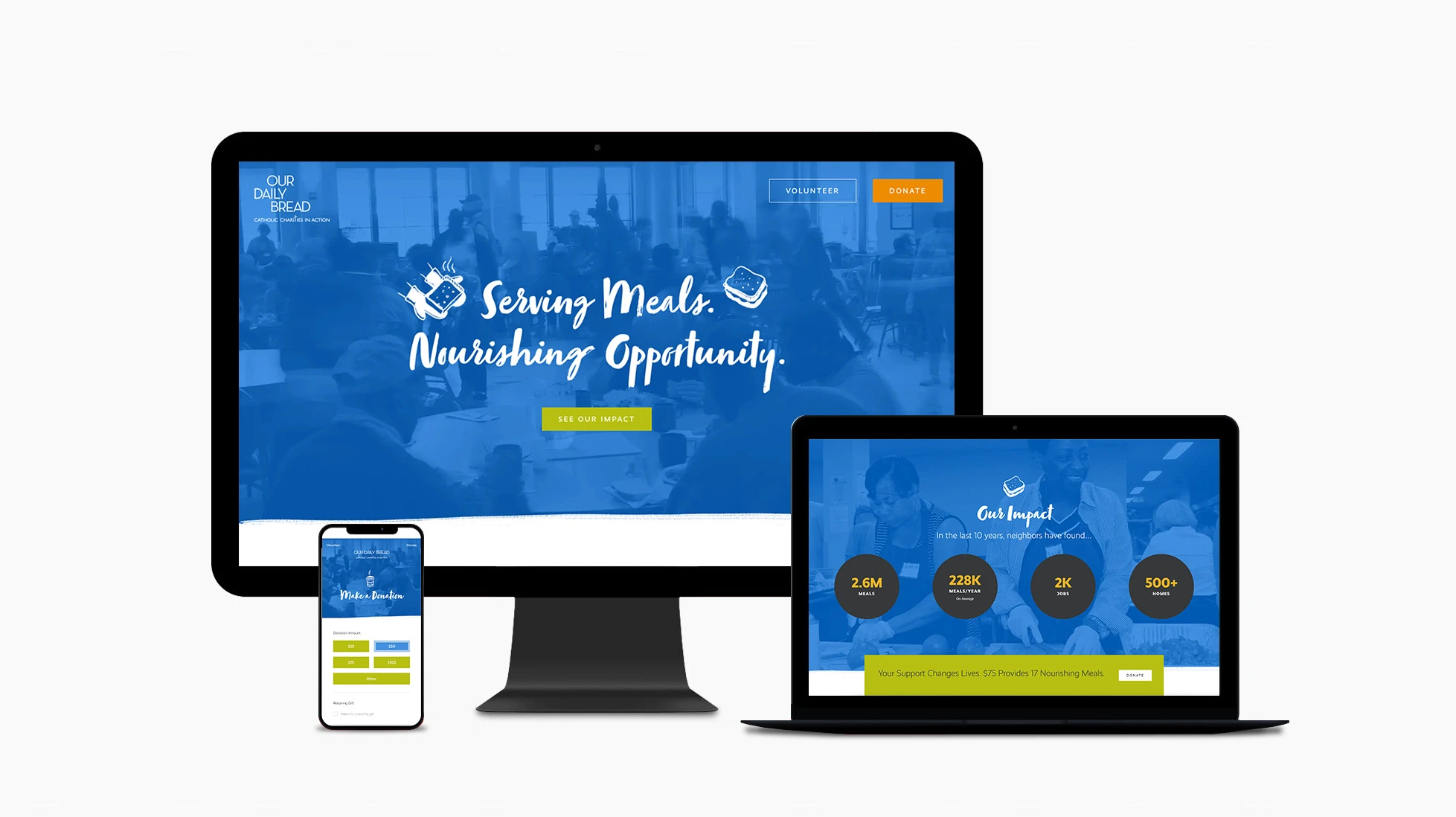 The design and motivation for the online home of Nourishing Opportunity is centered around the organization’s three main principles — dignity, trust, and commitment. Through the letters and donation page, they were able to serve 261,471 meals in fiscal year 2021, fulfilling their charge to honor those principles and feed those in need. Through this gateway, Nourishing Opportunity also guided individuals to more programming that feeds their lives in a fully holistic way, including access to housing and job opportunities.