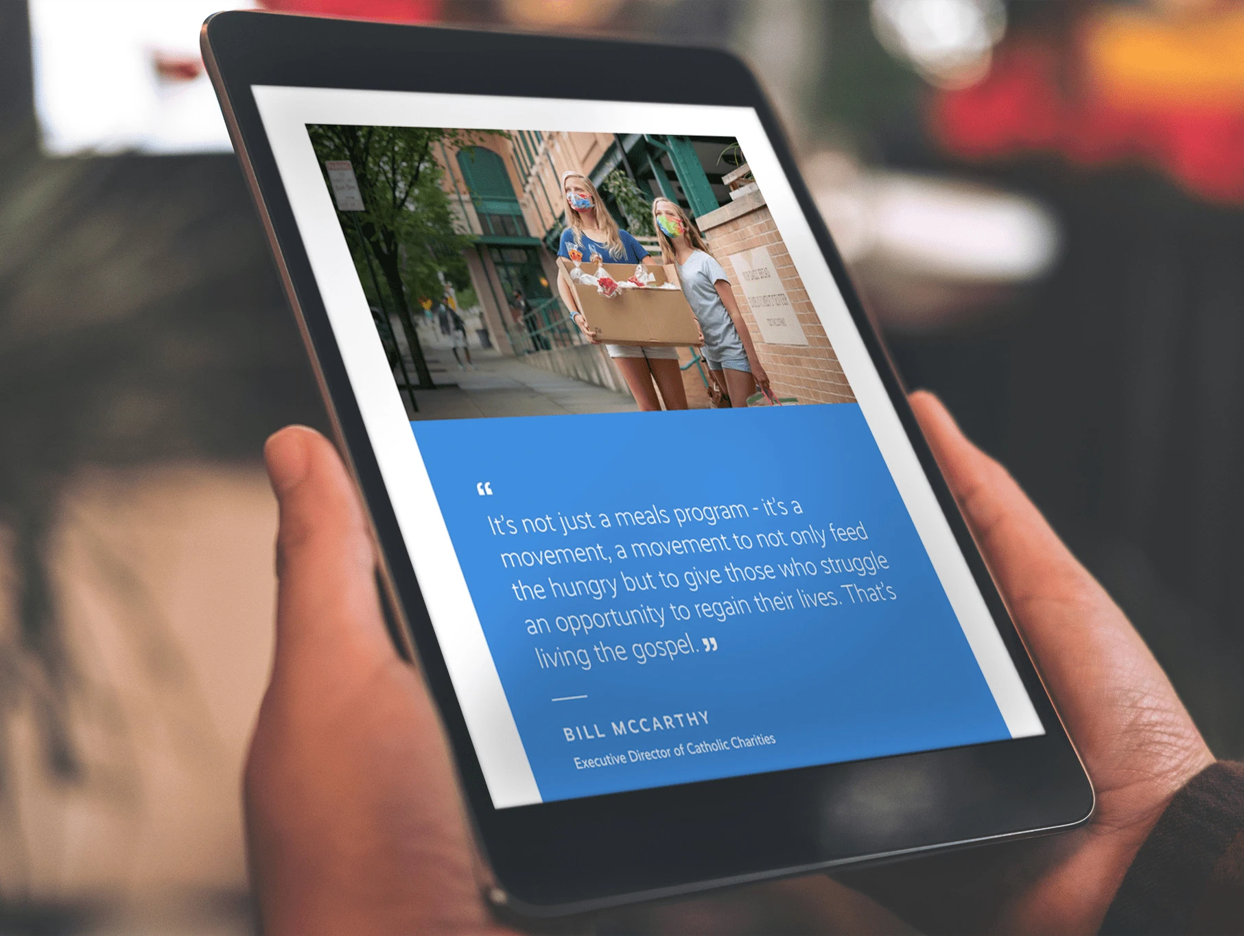 The two main elements that drove the strategy for giving Nourishing Opportunity the platform expansion it deserved were messaging and the landing page. When it came to the latter, it was essential that the organization had an easily accessible and navigable website to drive potential donors to. For messaging, as one program under the prolific Catholic Charities umbrella, Vitamin set it apart by highlighting the ingredients that give Nourishing Opportunity its own unique identity.